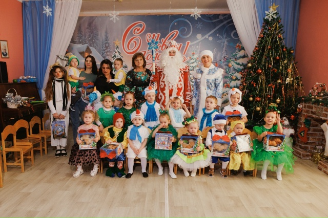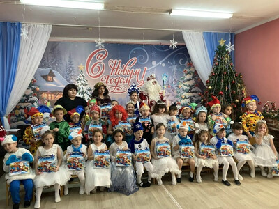Ярко украшенный зал, сверкающие огоньки, нарядная ёлка, увлекательные танцы и хороводы, новогодние песни и стихотворения, весёлые игры подарили ребятам и их родителям праздничное настроение. Все дети были в восторге от сюрпризов и встреч со сказочными героями. Добрый волшебник Дедушка Мороз вручил новогодний подарок каждому ребёнку.