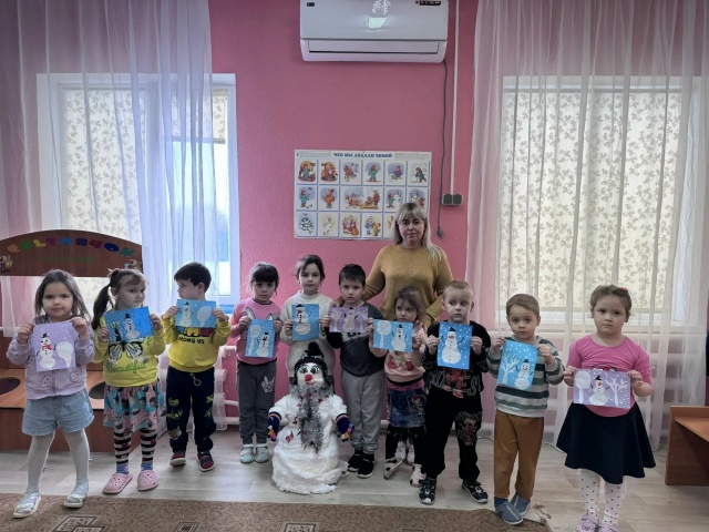 Накануне этого праздника ребята из нашего детского сада познакомились с его историей, узнали о том, что означает фигура снеговика. Позже нарисовали этого снежного красавца.