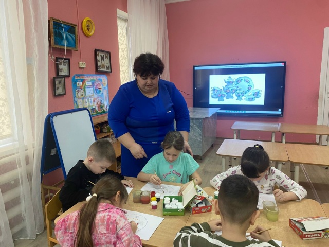 Ребята из нашего садика продолжают знакомиться с народным промыслом Семикаракорская керамика. Они узнали, что изготовлены изделия из особой белой глины. В основу росписи вошли степные растения Донского края с некрупными соцветиями. Весь цвет Донской земли впитал в себя Семикаракорский фаянс. Дети с большим интересом принялись расписывать бумажную посуду. Для выполнения мазка, на кисть набирается краска двух цветов - в этом самобытность семикаракорской росписи. В конце занятия устроили выставку рисунков.